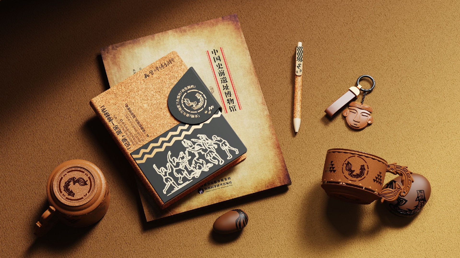 七千年前,北首岭的先民以草木为家,与山河共息。今天,我们以秸秆为纸,复刻远古的智慧⸺取之自然,归于自然。盒面图案以遗址出土文物纹样和原始生活场景为蓝本,描绘了耕作与祭祀的北首岭先民风貌,表达了先民取之于自然,归于自然的生活状态,展现了“索取时低头,回赠时虔诚。”的祭祀信仰。将“生活—自然—信仰”三者串联,形成可触摸的文化符号,同时呼应礼盒“自然共生”的核心理念。通过提取北首岭陶器纹样考古元素,增添文化辨识度。